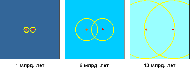 Рис. 3.5.1. Расширение космического горизонта в